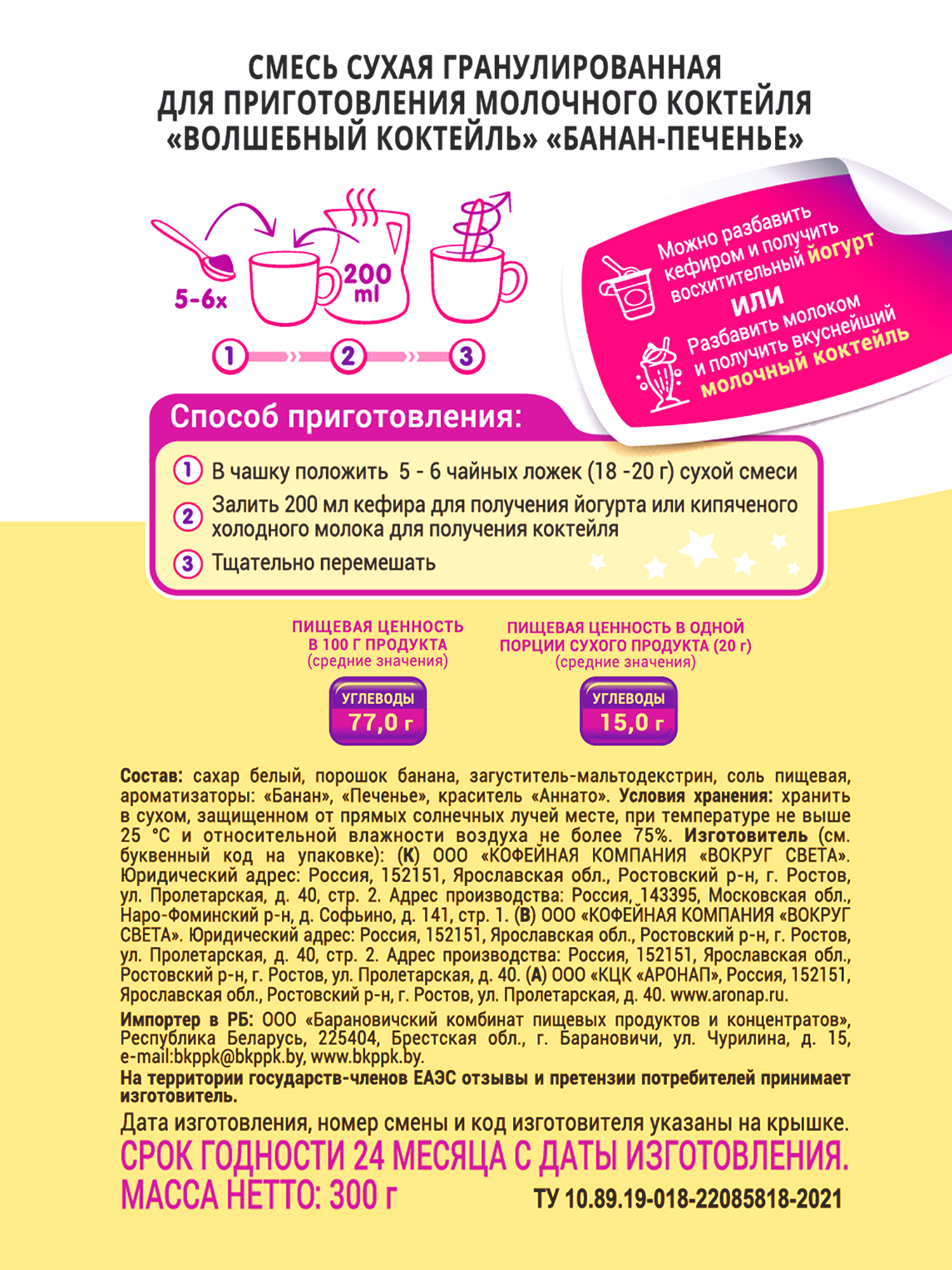 Волшебный молочный коктейль Белый мишка Банан + Печенье Быстрорастворимый 300 г информация: