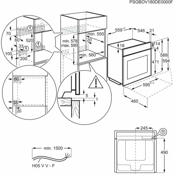 Встраиваемый духовой шкаф ELECTROLUX EOE7F31V, конвекция, 72л