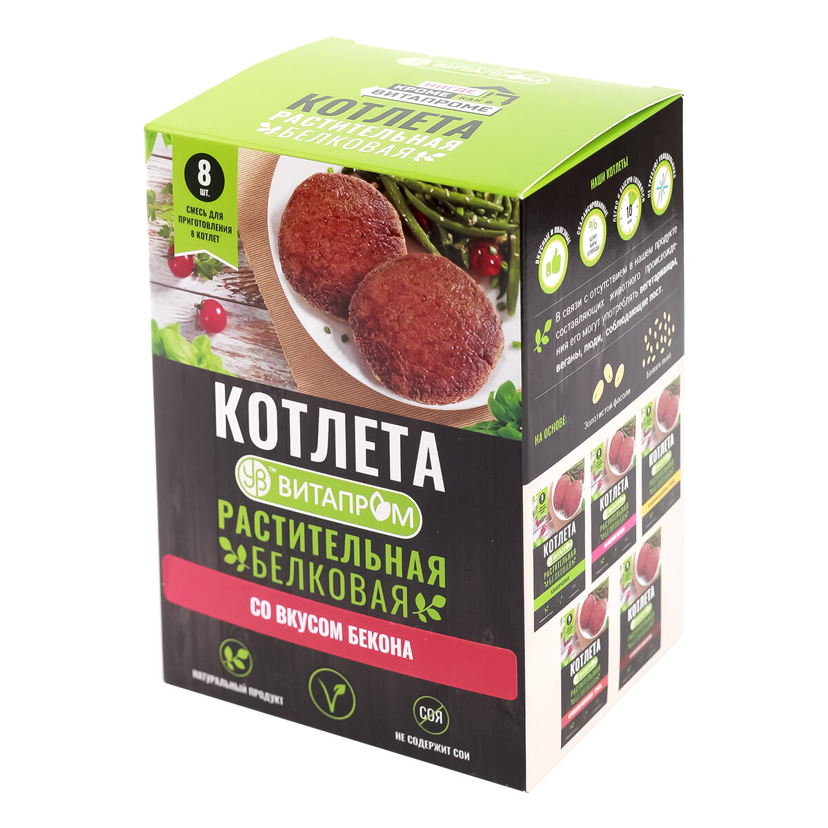 10 цен на Котлета белковая растительная «Со вкусом Бекона» (смесь сухая на 8 шт.), коробочка, 200 г. Витапром