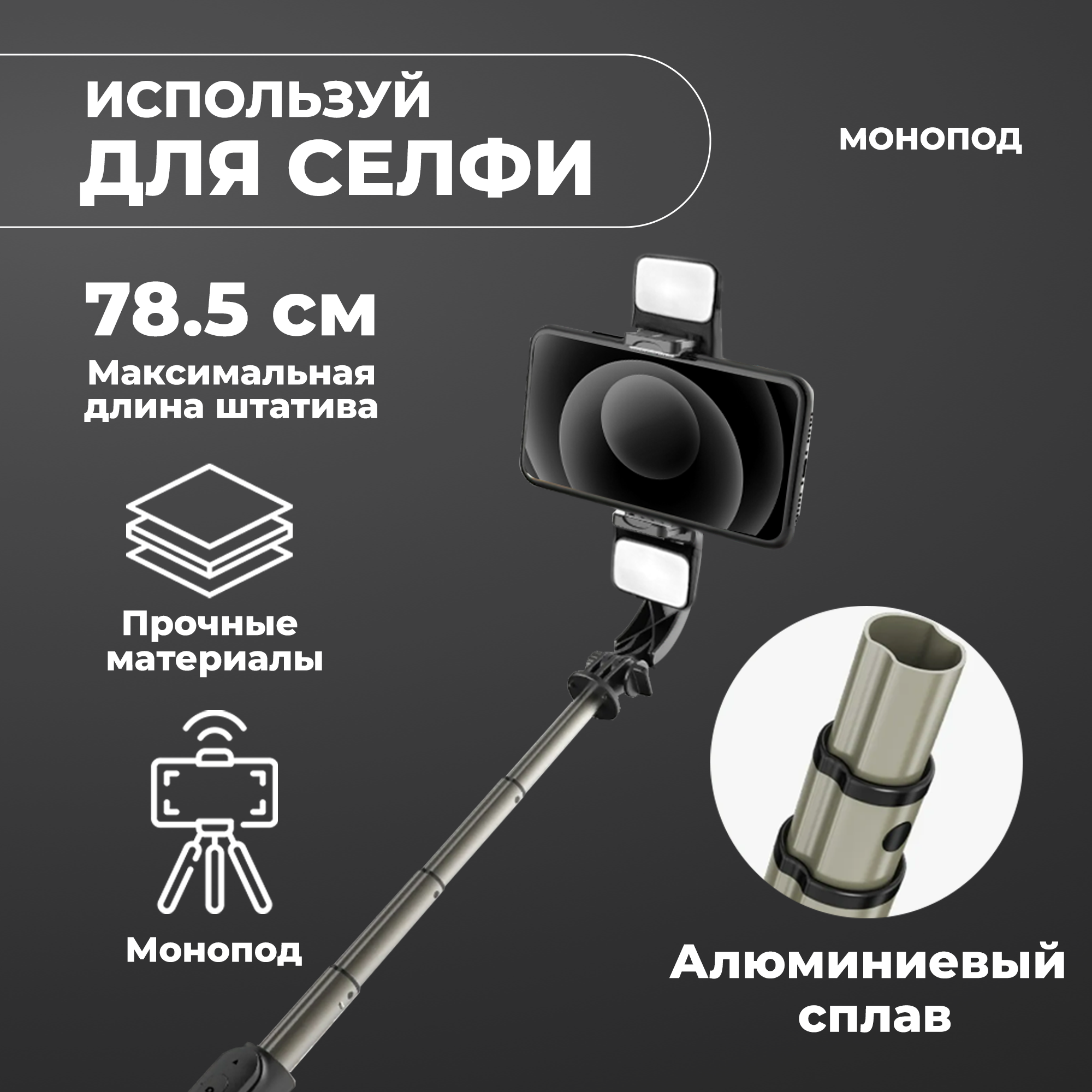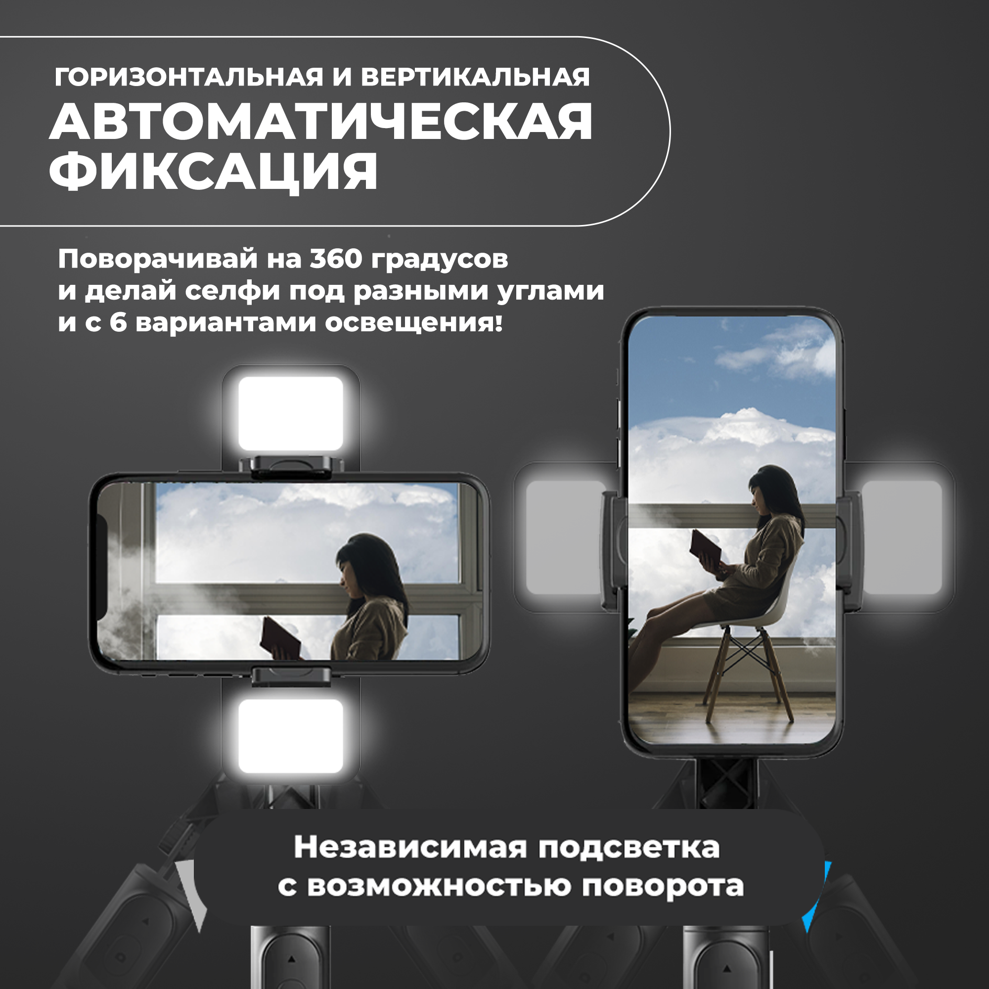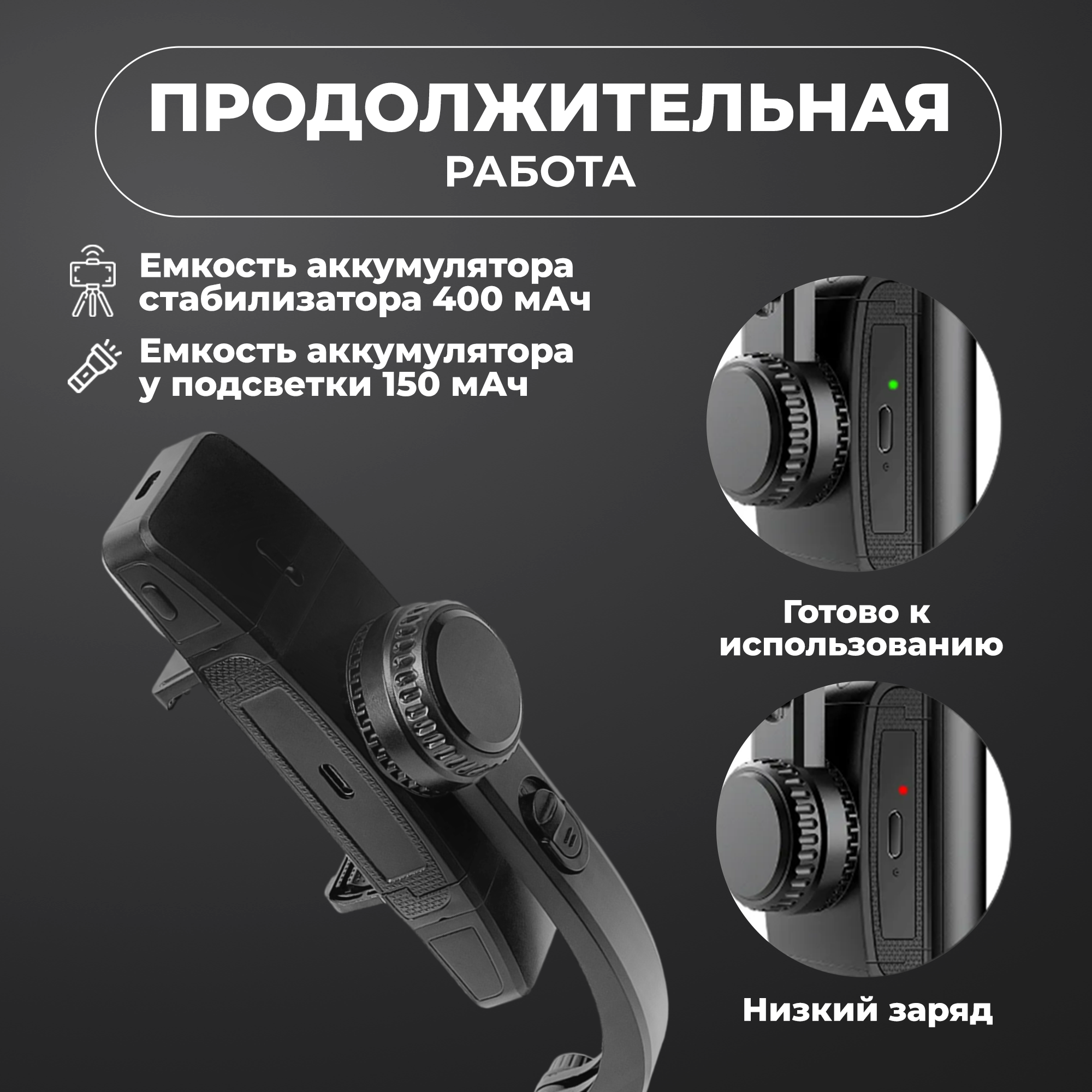10 цен на Стабилизатор штатив для телефона, WALKER, WTRS-59, автостабилизация, двойная поворотная подсветка, 78.5 см, держатель для телефона, штатив, черный