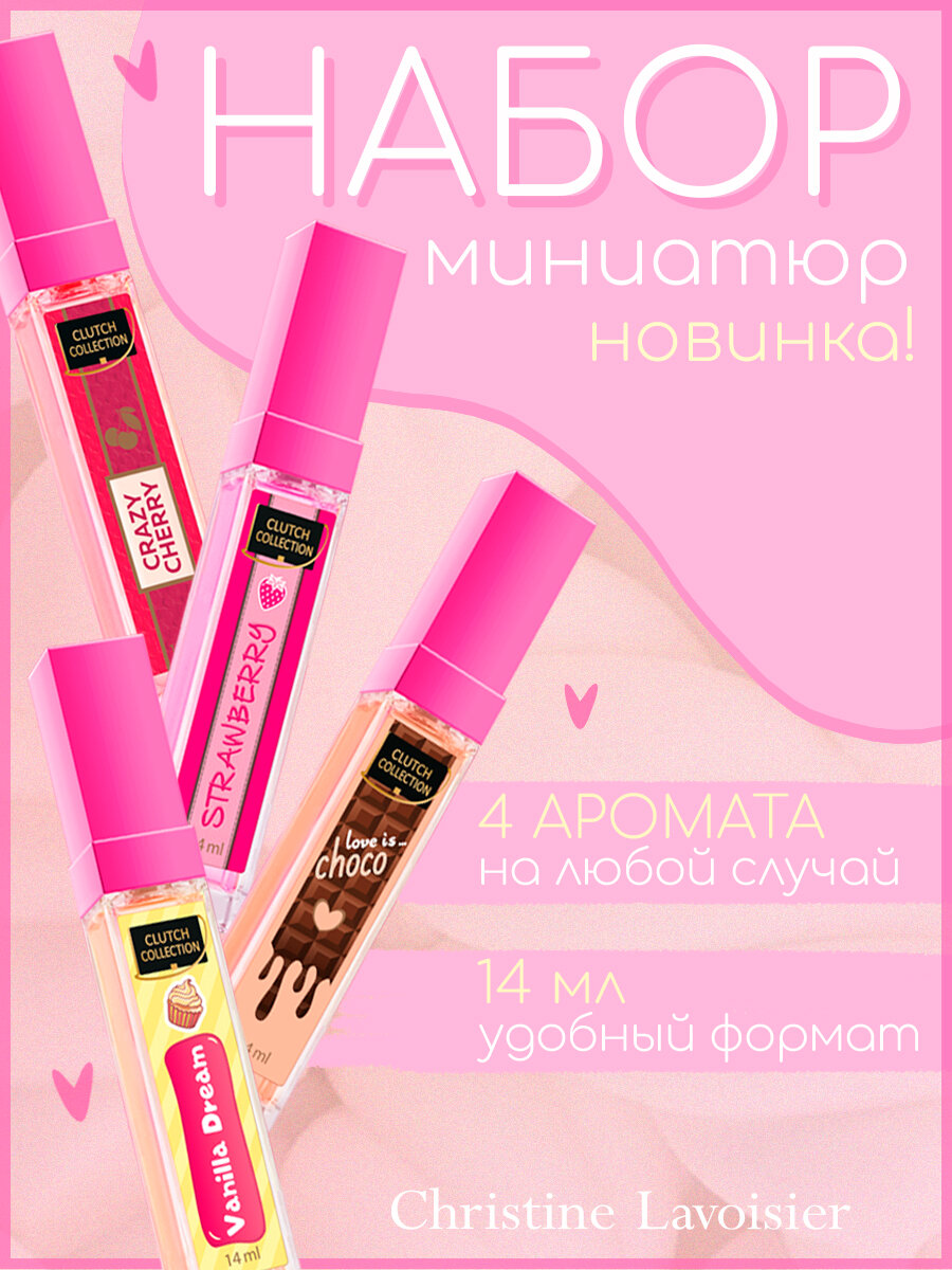 Отзывы на Набор Clutch Collection 1 ТВ 4x14 мл набор духов, миниатюры пробники женские Сrazy Cherry cherry, Love is... choco, Strawberry ,Vanilla Dream
