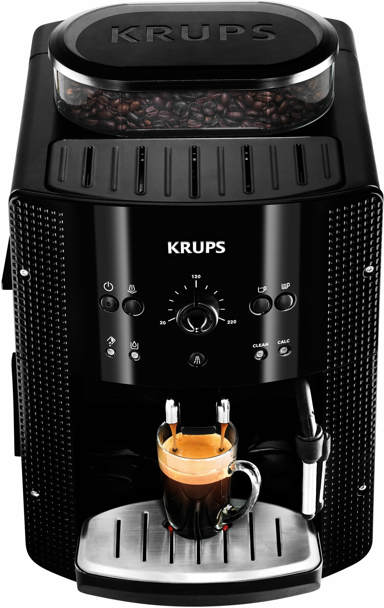 Автоматическая кофемашина Krups Essential EA810870 с LED индикацией, паровое сопло для пены, металлические жернова