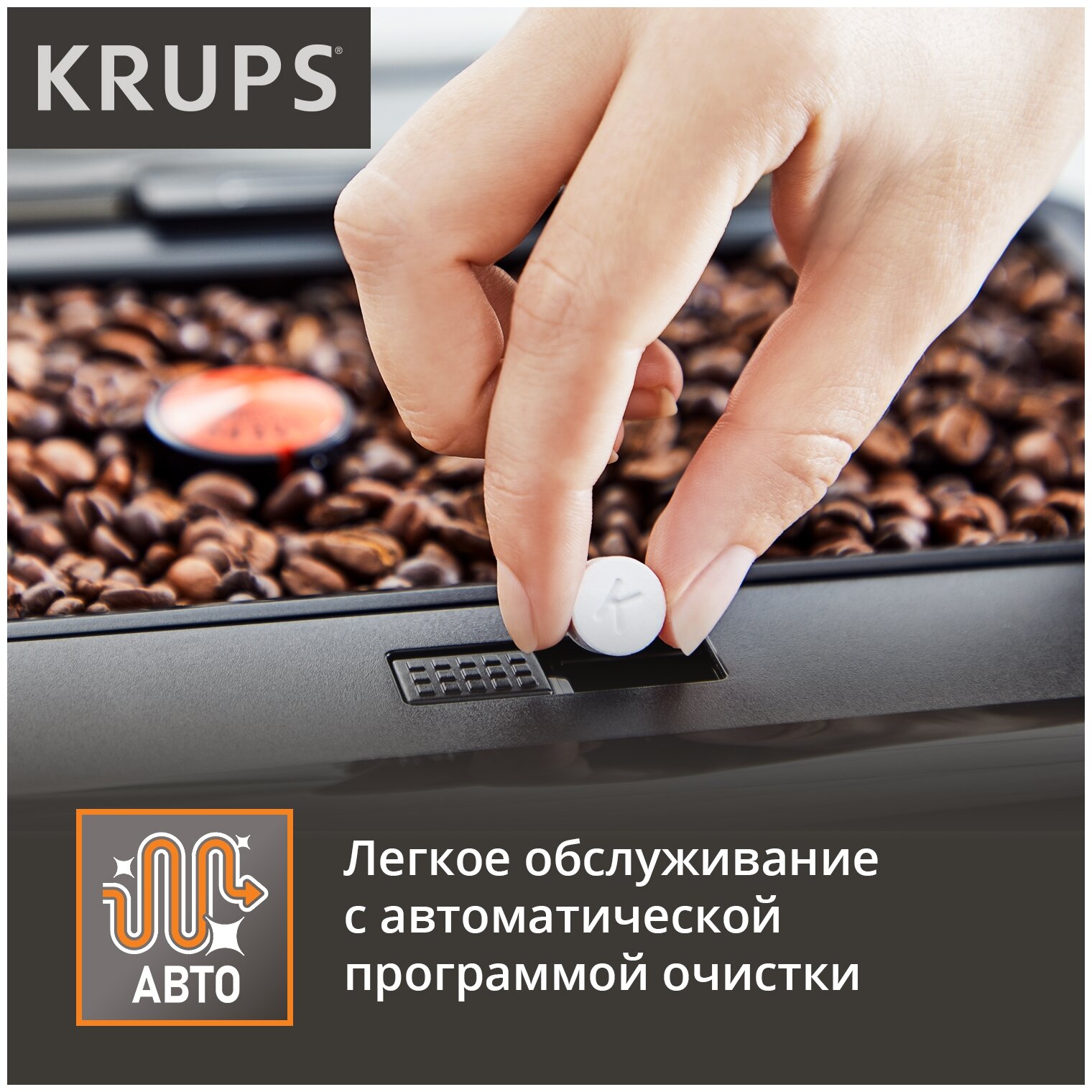Автоматическая кофемашина Krups Essential EA810870 с LED индикацией, паровое сопло для пены, металлические жернова