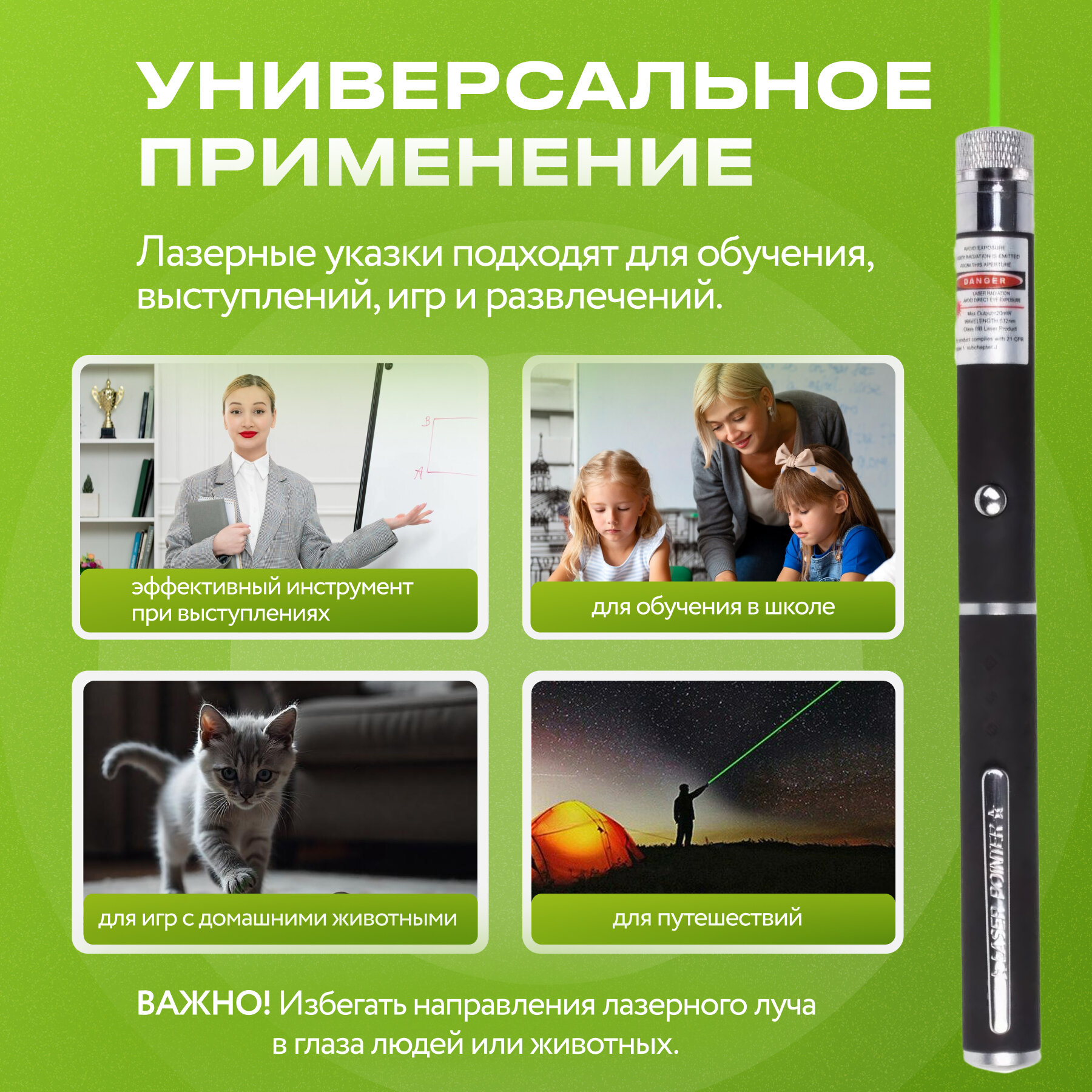 Лазерная указка с зелёным цветом луча для игр с животными информация: