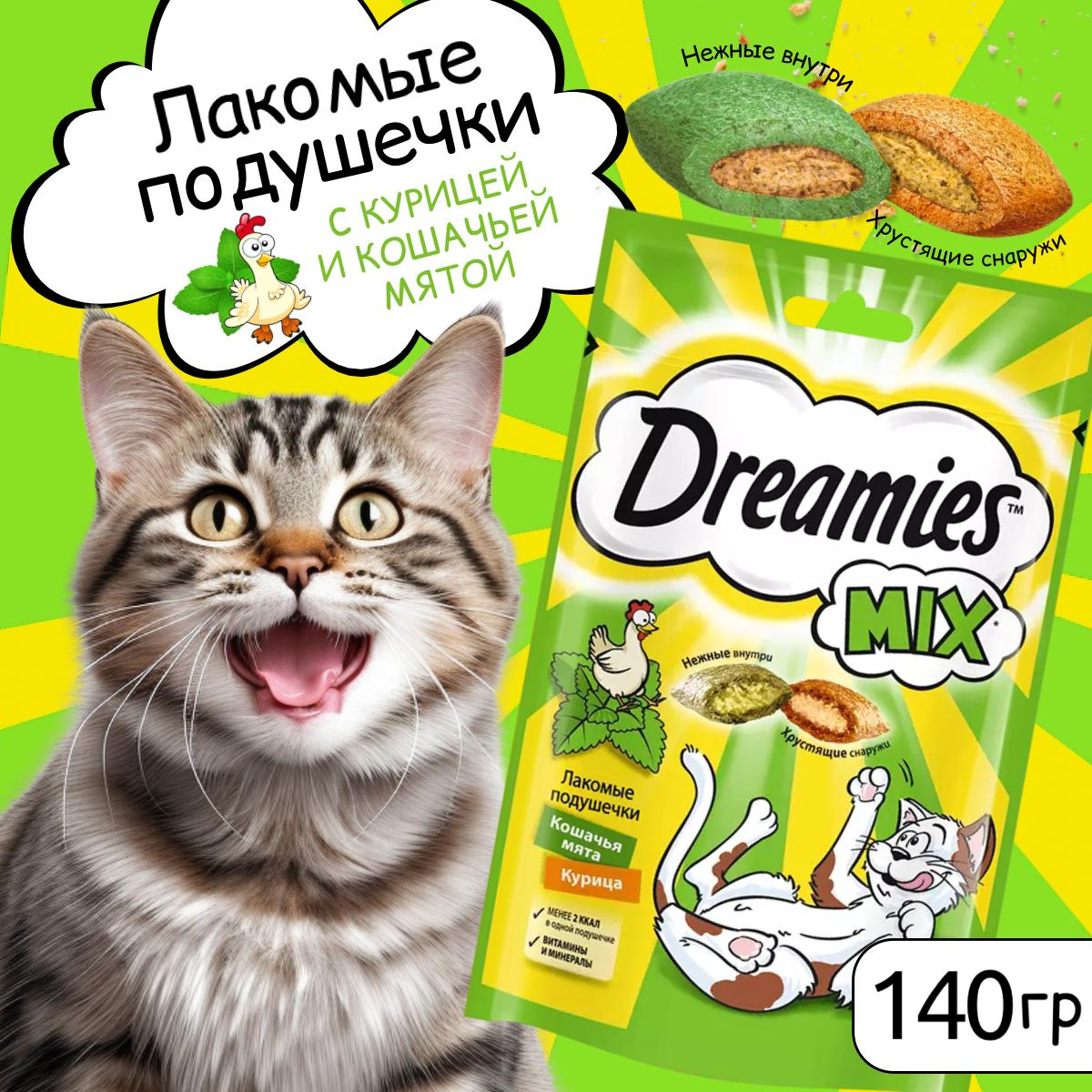 Лакомство DREAMIES MIX для кошек подушечки с курицей и мятой (140 гр х 2 шт)