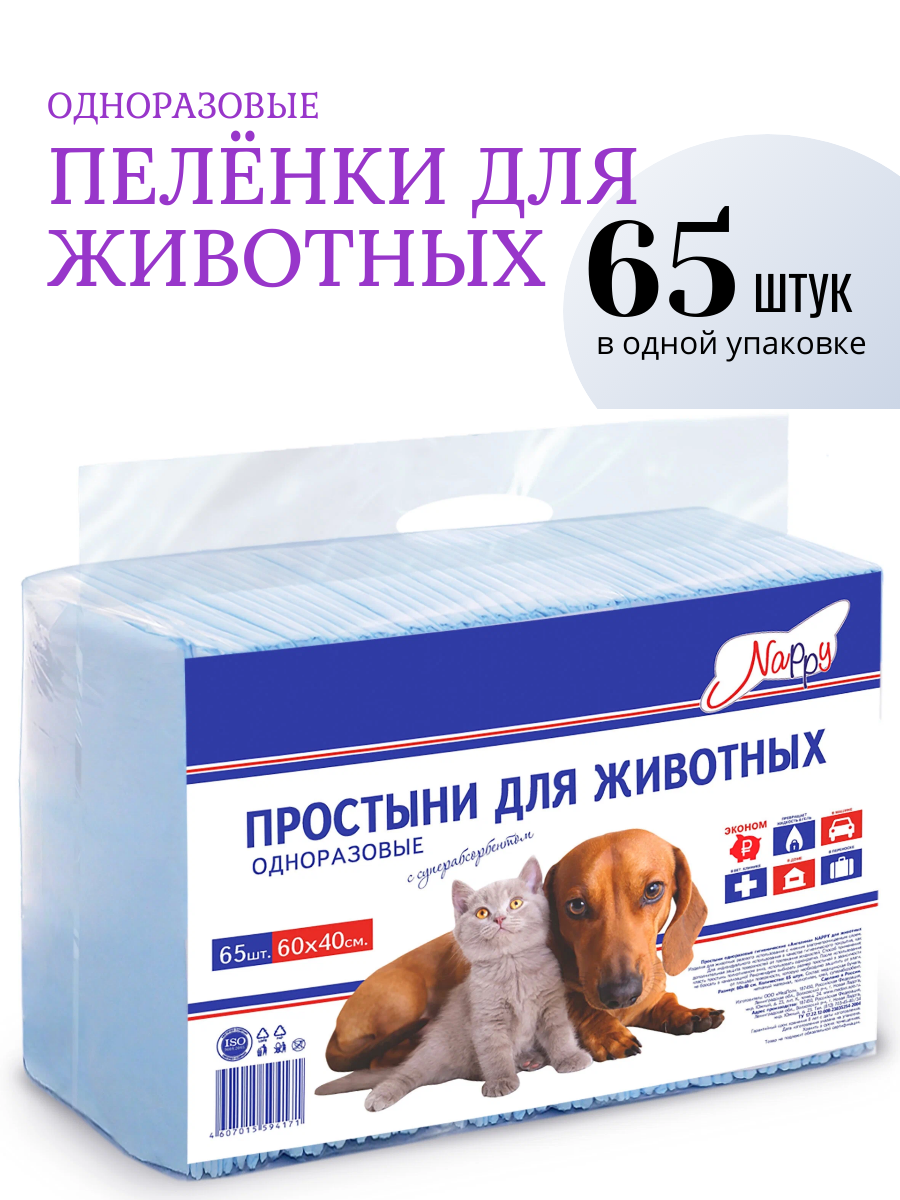 Одноразовые пеленки для животных, собак, кошек, впитывающие пеленки с гелем, большой размер 60х40 см, 65 штук информация: