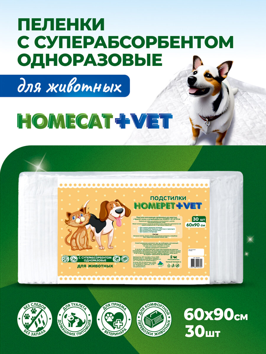 HOMEPET VET 30 шт 60 см х 90 см пеленки для животных впитывающие гелевые информация: