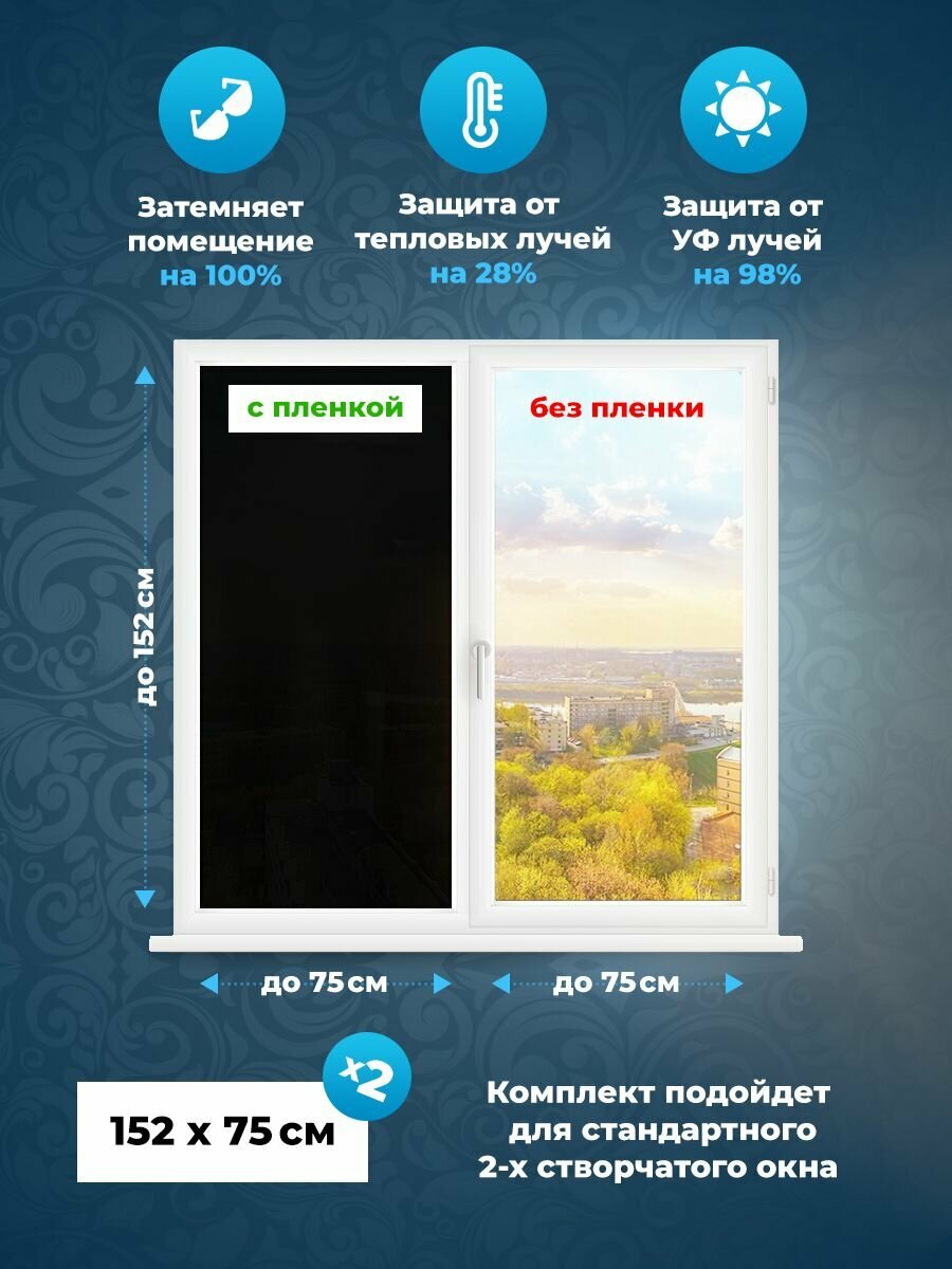 Пленка от солнца на окна Comfort Window. Пленка на окно солнцезащитная. Тонировка черная, комплект на 2-створчатое окно 152х75 х 2 шт 944 ₽