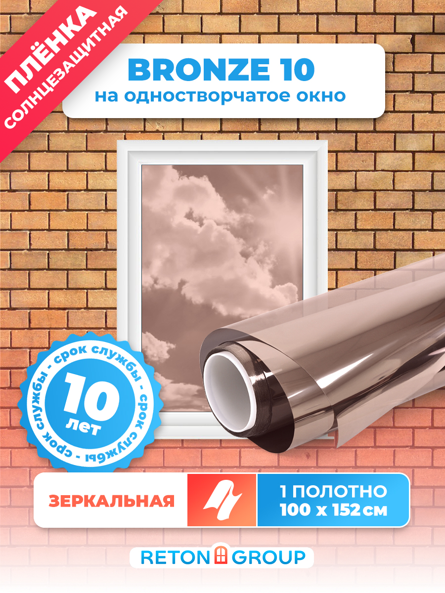 Пленка солнцезащитная для окон. Светоотражающая пленка на окна Bronze 10 Reton Group, цвет: бронза, размер: 152x75 см x 3шт 1 795 ₽