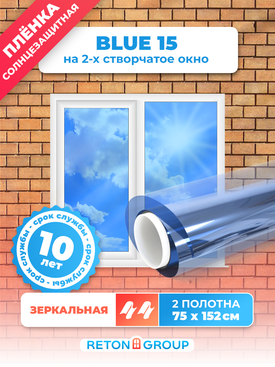 10 цен на Зеркальная пленка на окна. Пленка солнцезащитная для окон Blue 15 - комплект на 2 створки: 75х152см - 2 шт.