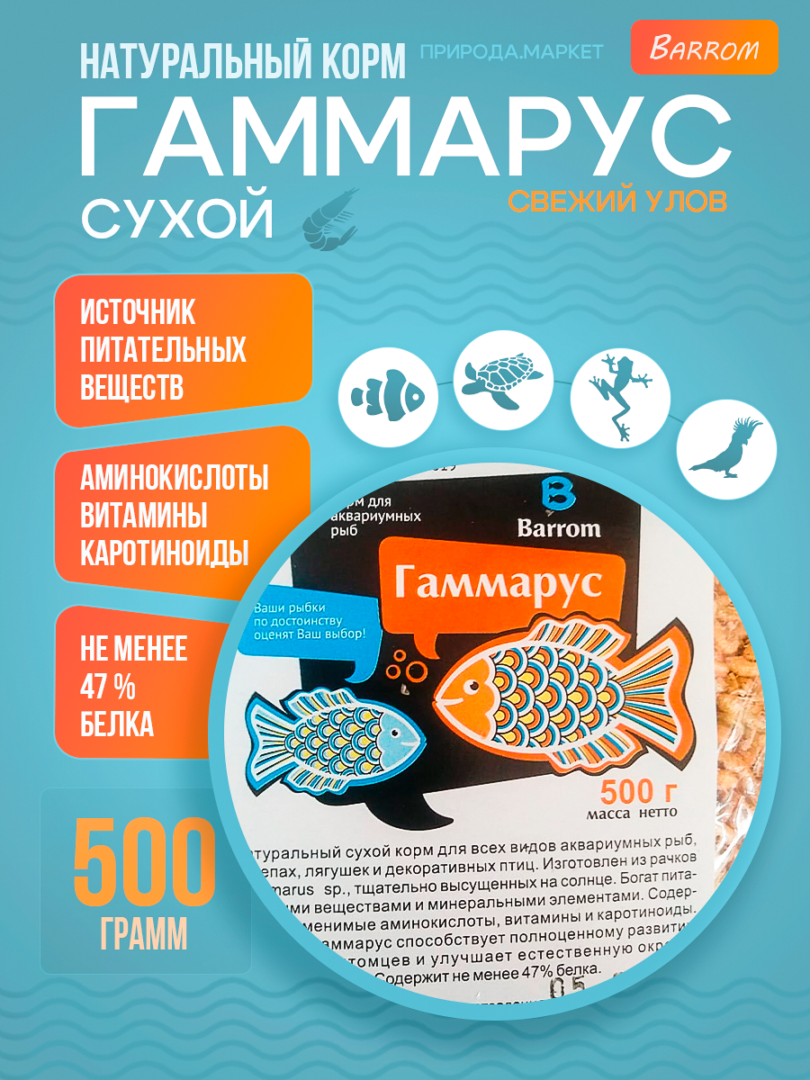 Гаммарус сухой для рыб черепах крыс хомяков 500г информация: