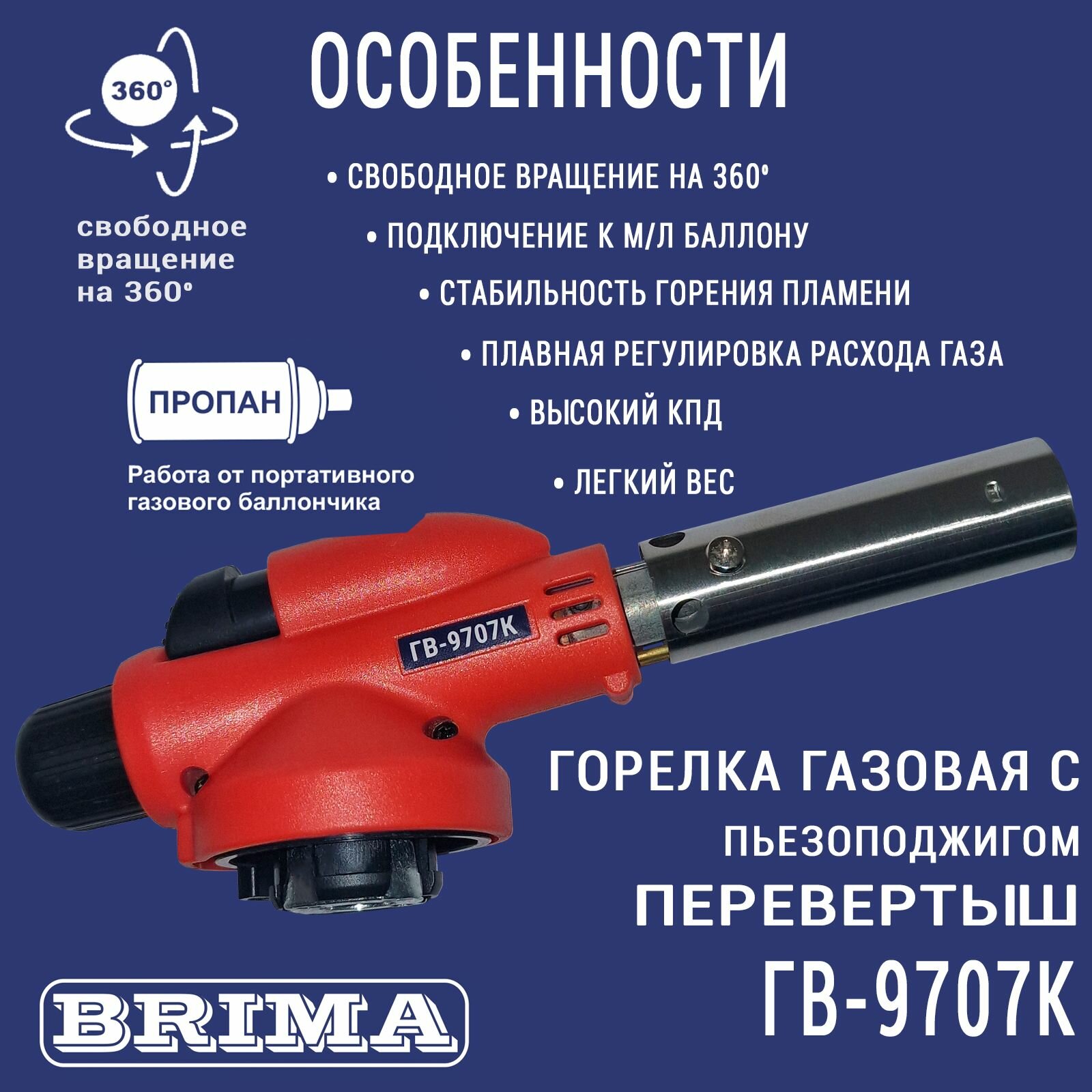 Газовая горелка перевертыш Brima ГВ-9707К информация: