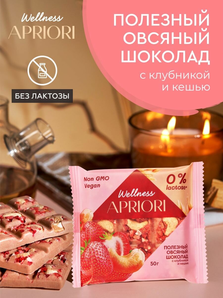 Шоколад овсяный Apriori Wellness с клубникой и кешью, 50г информация: