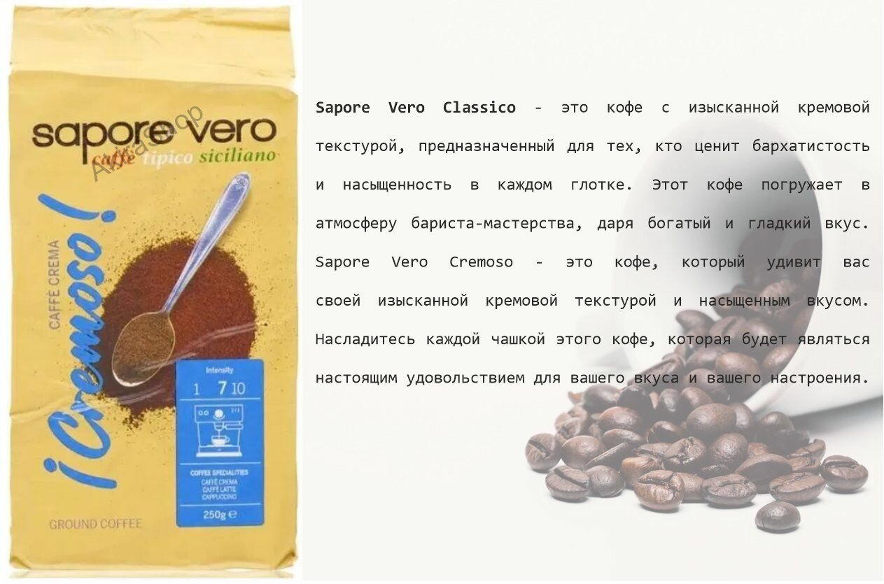 2 шт. Кофе молотый Sapore Vero Cremoso, 250 гр (500 гр) информация: