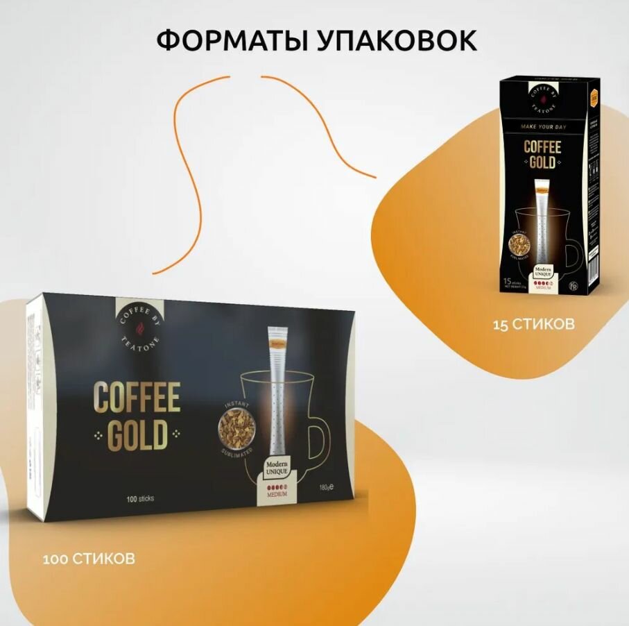 | Комплектация | Кофе растворимый Teatone Coffee Gold в стиках, 1,8 гр x 100 шт |
