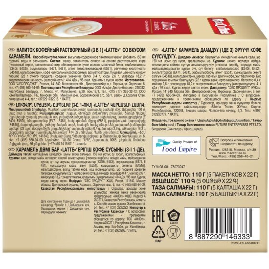 Кофейный напиток Maccoffee Латте Al Caramello со вкусом карамели 5 шт информация: