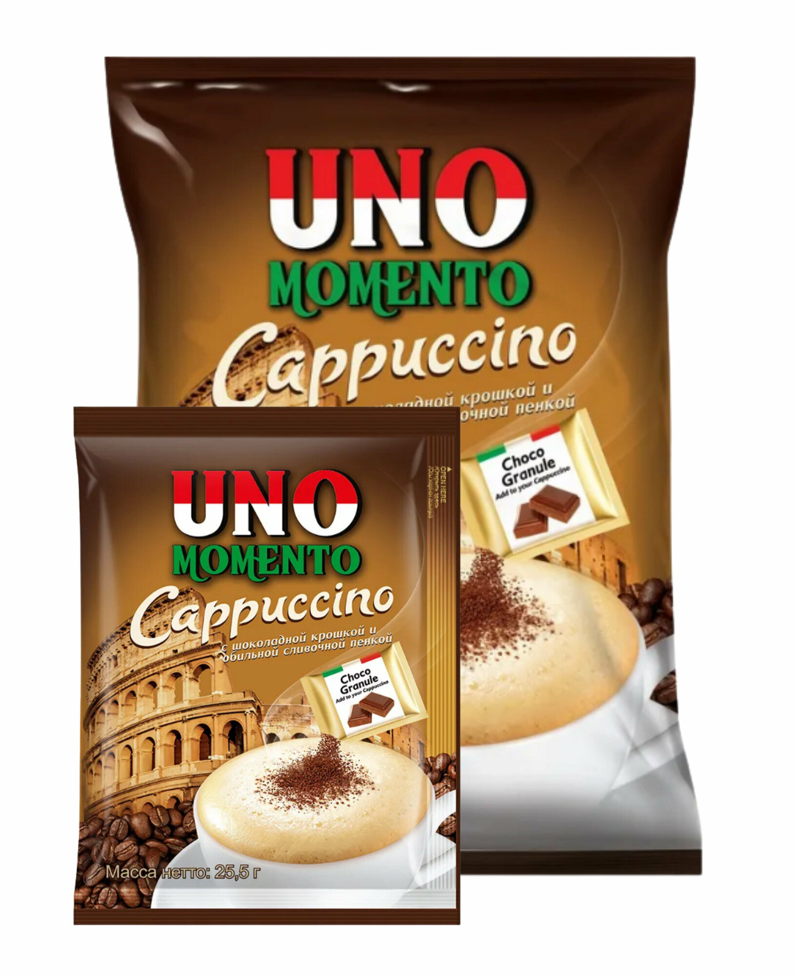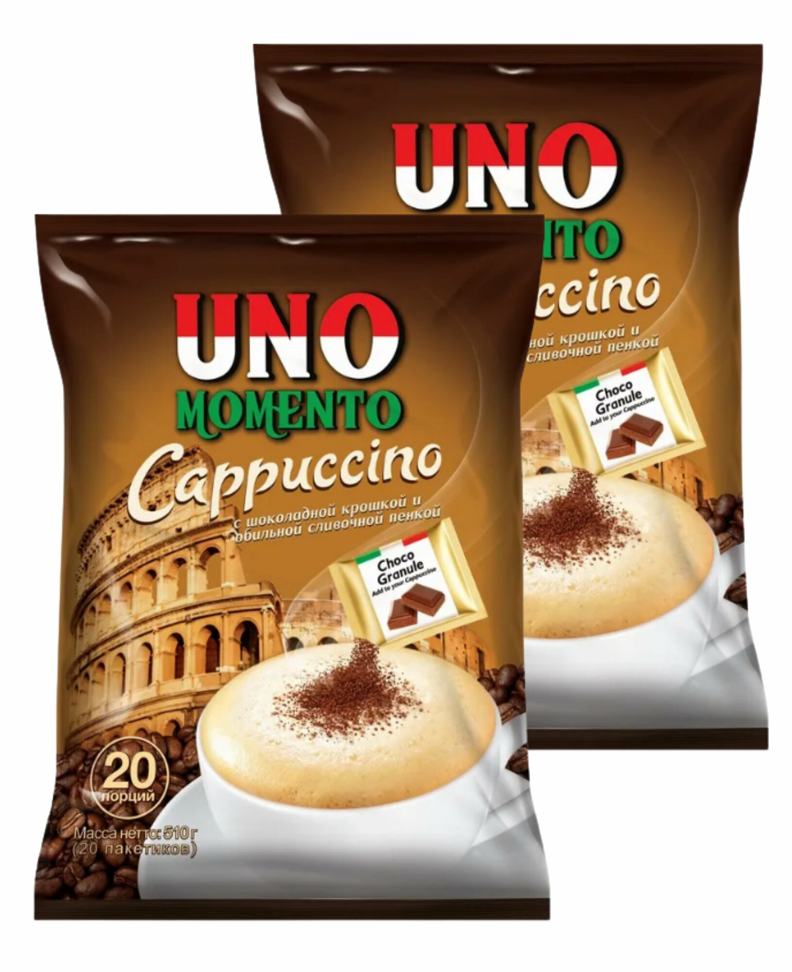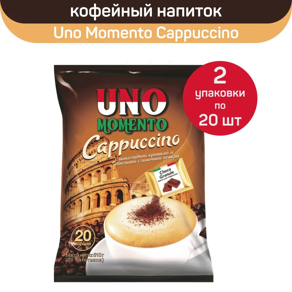 Кофейный напиток Uno Momento Cappuccino порционный быстрорастворимый, 2 упаковки по 20 пакетиков по 25.5 г информация: