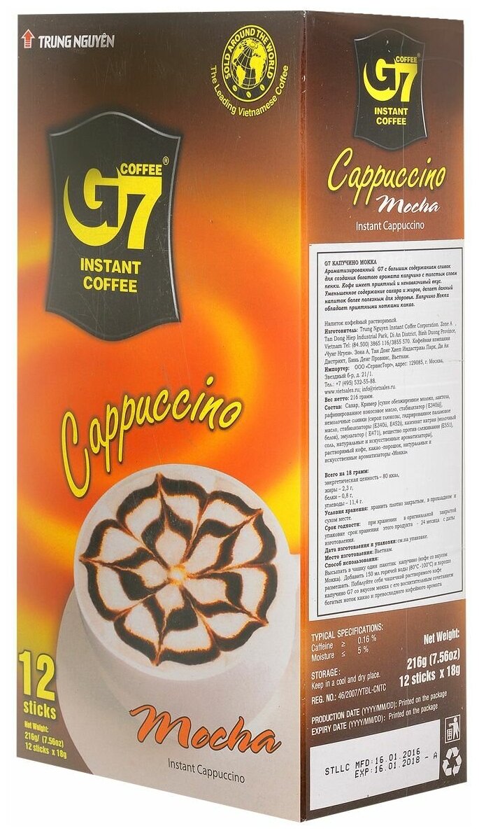 Вьетнамский растворимый кофе G7 Cappuccino Mocha (12 шт по 18г) - 216г информация:
