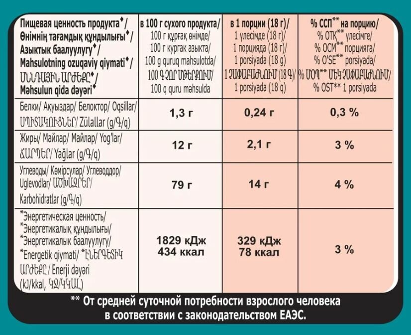 | Дополнительная информация | Хранить в сухом и прохладном месте. |