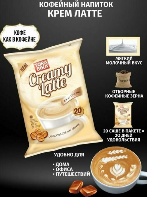 Кофе 3 в 1 Торабика Крем Латте 60 порционных пакетиков