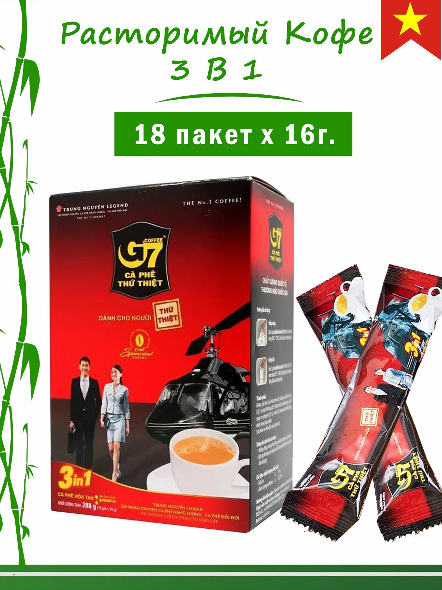 Вьетнамский растворимый кофе 3 в 1 в пакетиках, Instant coffee G7, Trung Nguyen, 18 пакетик по 16 г. информация:
