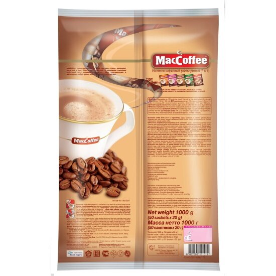 10 цен на Кофейный напиток Maccoffee Оригинал 3 в 1 растворимый 50 шт
