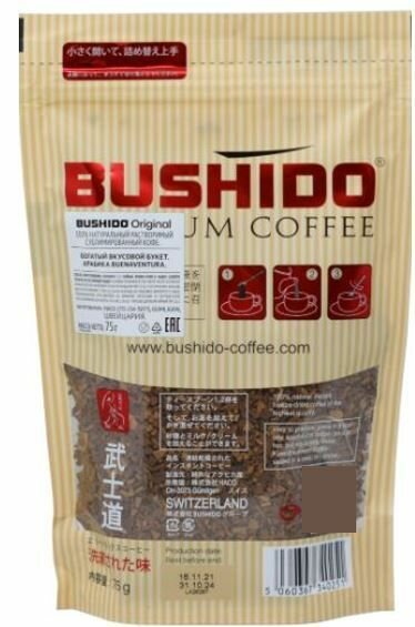 Кофе Бушидо Ориджинал набор 2шт*75 гр (Bushido Original) натуральный растворимый сублимированный мягкая упаковка/Швейцария/ информация: