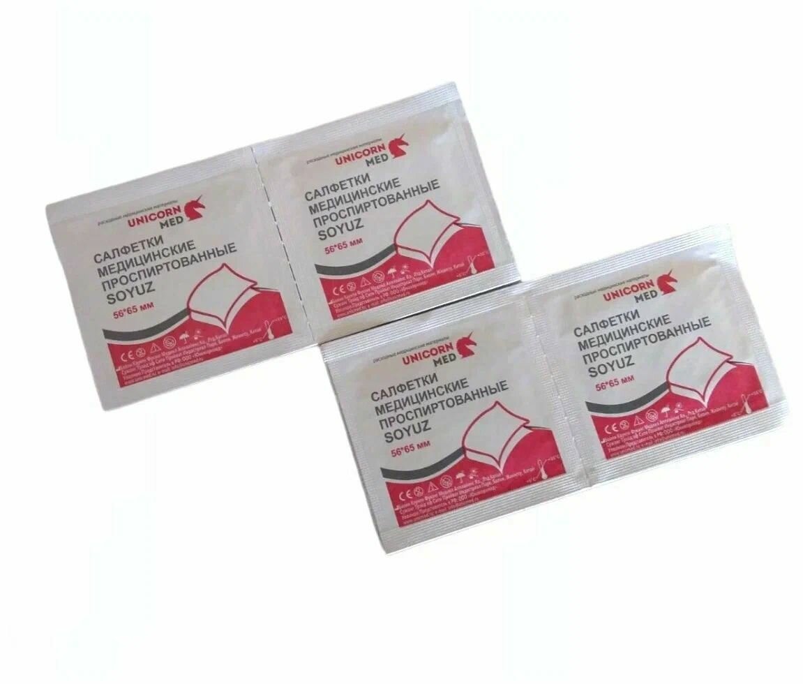 Спиртовые салфетки Unicorn Med SOYUZ, для инъекций, размер 110x125, 100 штук 500 ₽