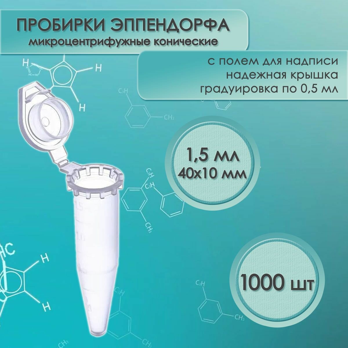 Пробирки типа Эппендорф (Eppendorf), 1,5 мл, 1000 шт. информация: