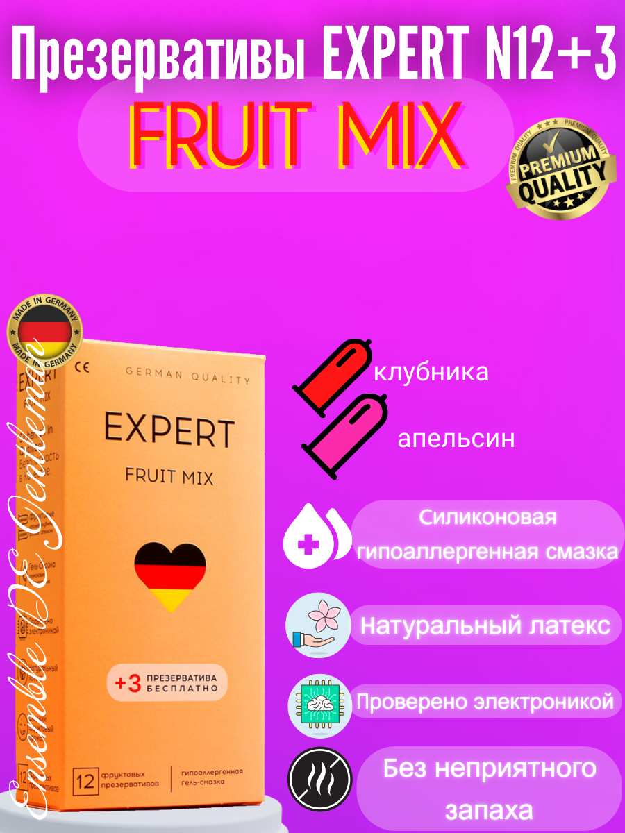 10 цен на Презервативы EXPERT FRUIT MIX N12+3 Фруктовый микс со вкусом клубники и апельсина, гладкие, силиконовая смазка