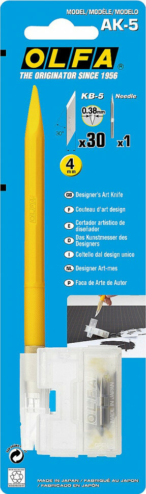 OLFA Нож OLFA "Utility Models" перовой дизайнерский, для точных работ, рукоятка с мини шпателем, 5 лезвий, 4мм , ( OL-AK-5 ) информация: