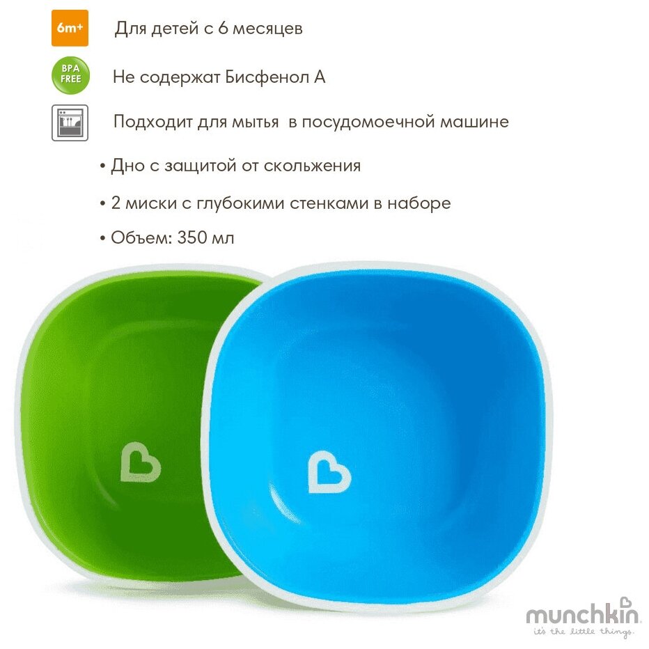 Munchkin набор детских цветных мисок Splash™ 2шт. 6+ Голубая зеленая информация: