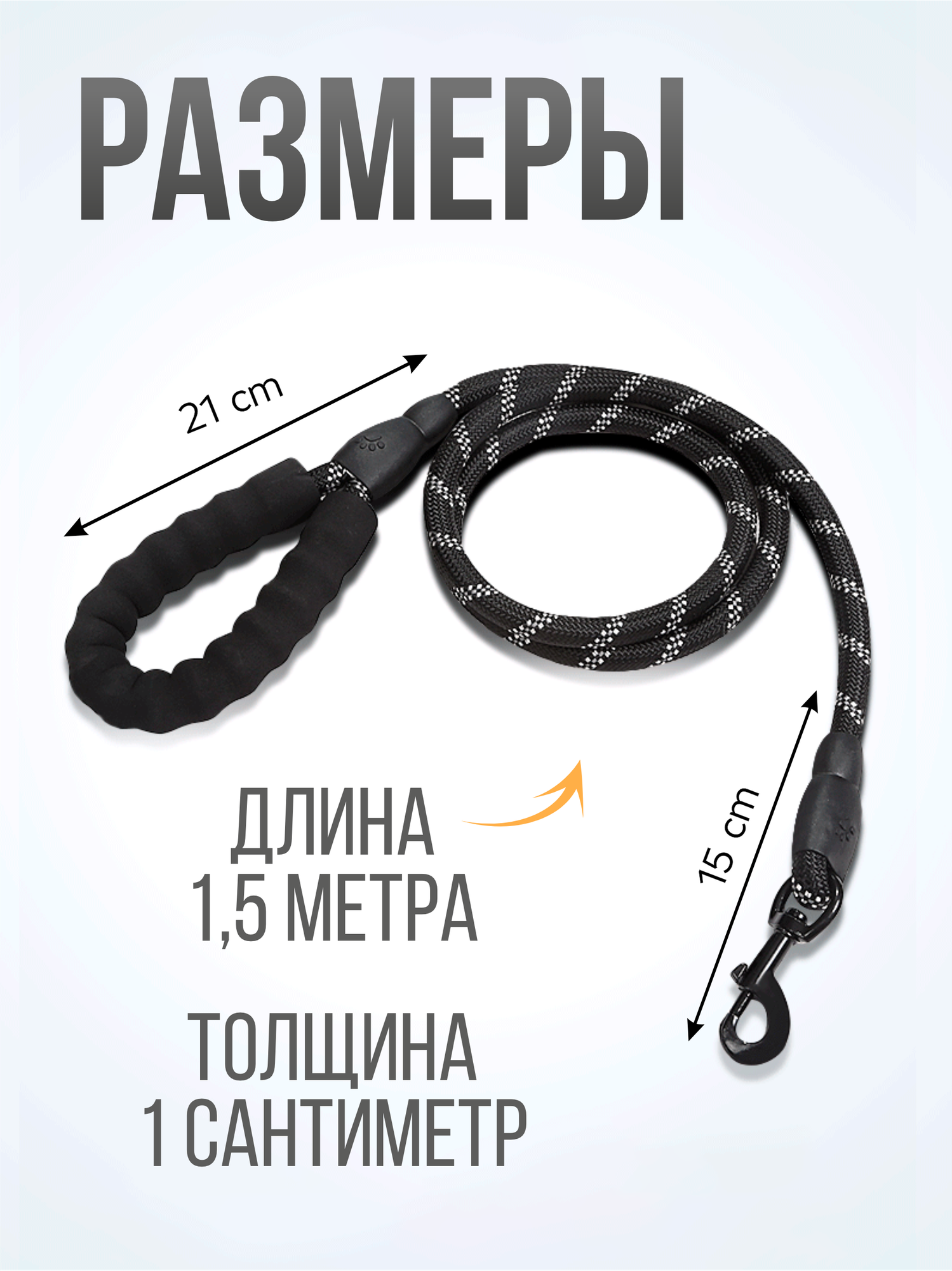 Поводок для собак, усиленный, светоотражающий, для средних и мелких пород, поводок нейлоновый 1,5 м информация: