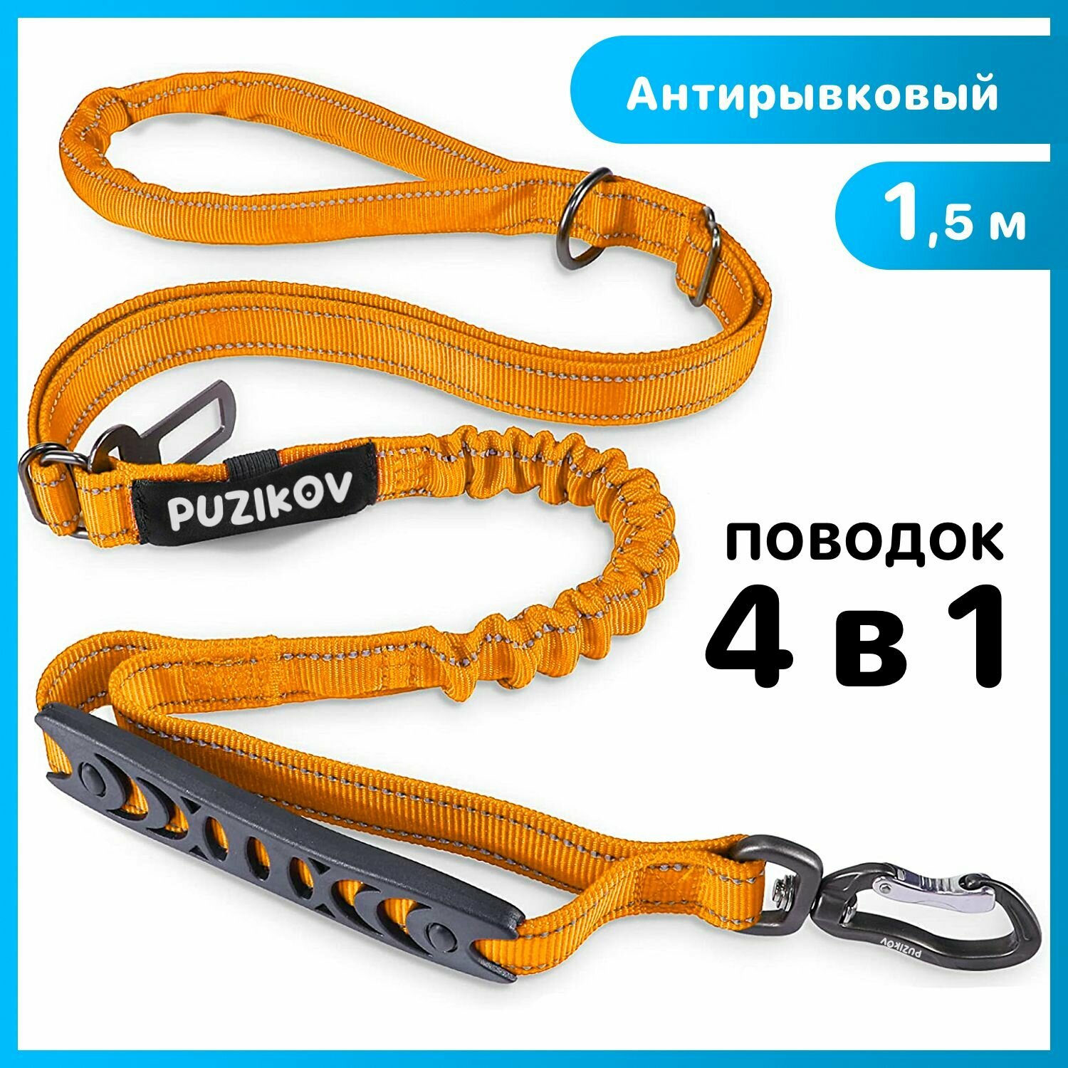 Поводок для собак Антирывковый с усиленным карабином 4 в 1 для средних и крупных пород, 1,2-1,5 метра, оранжевый, PUZIKOV / пузиков информация: