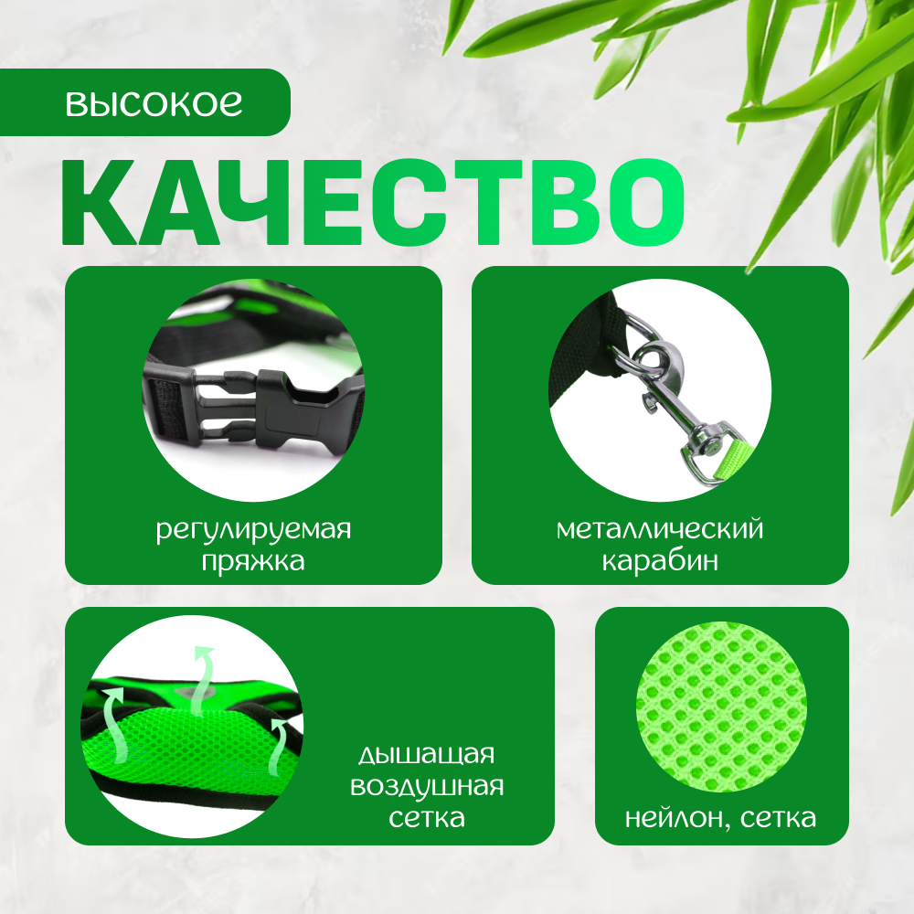 Шлейка с поводком для собак и кошек ZooWell универсальная, размер S, зеленая 307 ₽