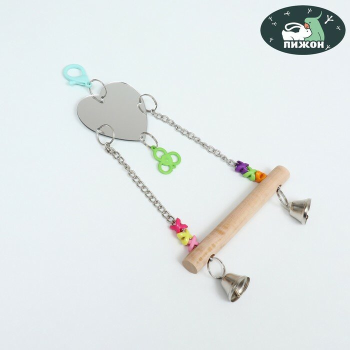 10 цен на Игрушка-качели для птиц с зеркалом и колокольчиками "Сердце", 15 х 28 см