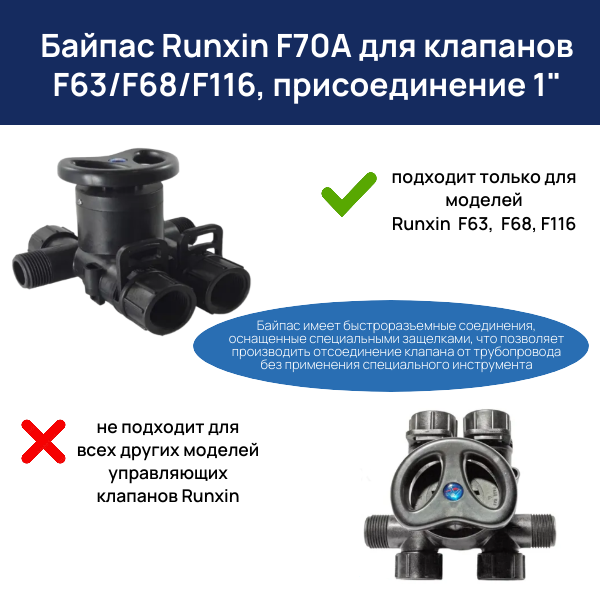Байпас Runxin F70A для клапанов F63/F68/F116, присоединение 1" информация: