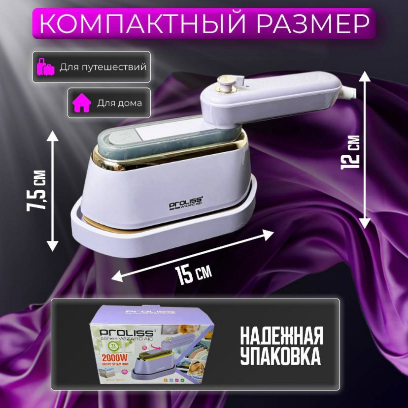 Ручной отпариватель "Proliss" для одежды и штор, 2000Вт, 60г/мин, фиолетовый информация: