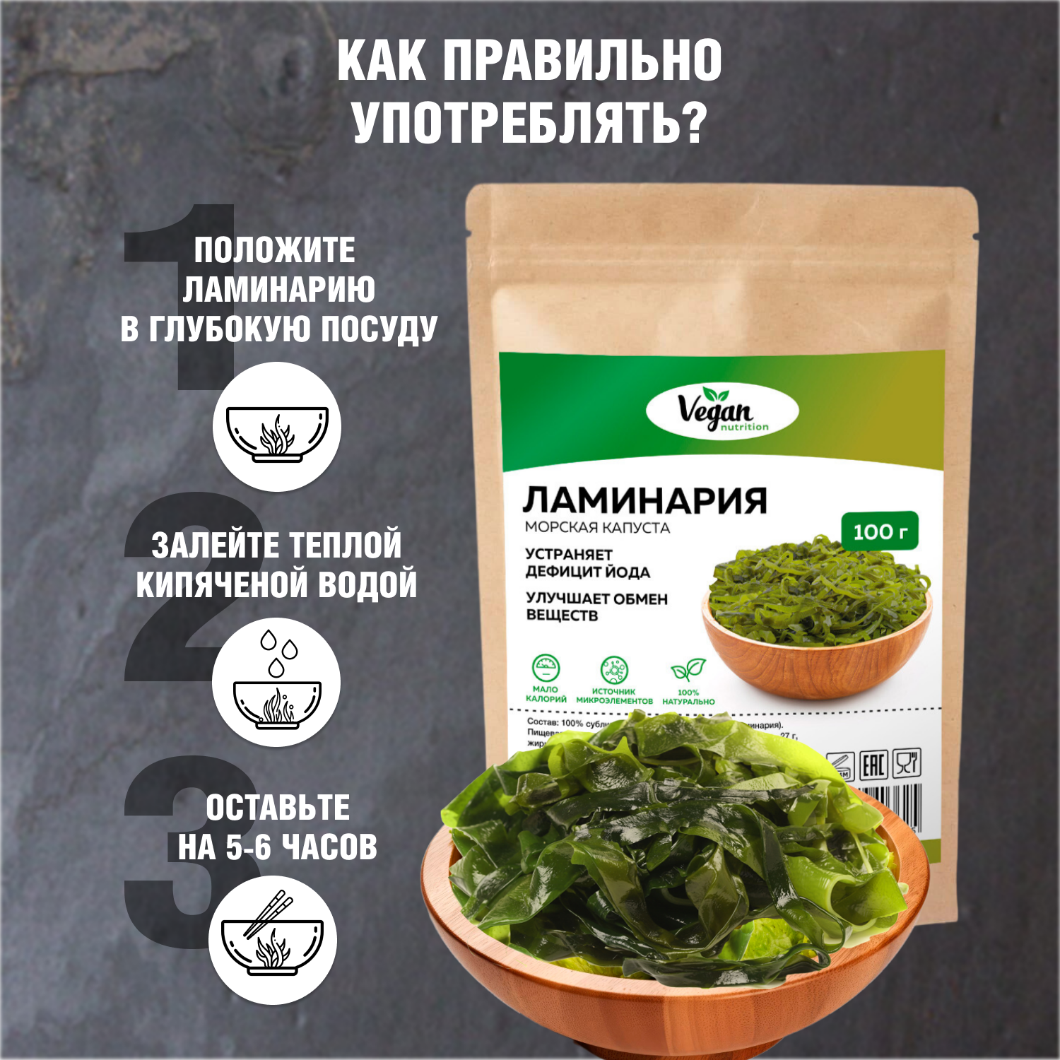 Ламинария, Vegan Nutrition, водоросли сушеные, 100 г информация: