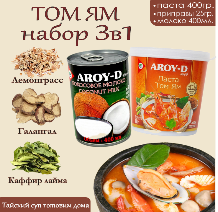 Характиристики этого товара не найдены!Отзывы на Том Ям набор для супа 3в1 AROY-D, Тайланд, острый кисло-сладкий