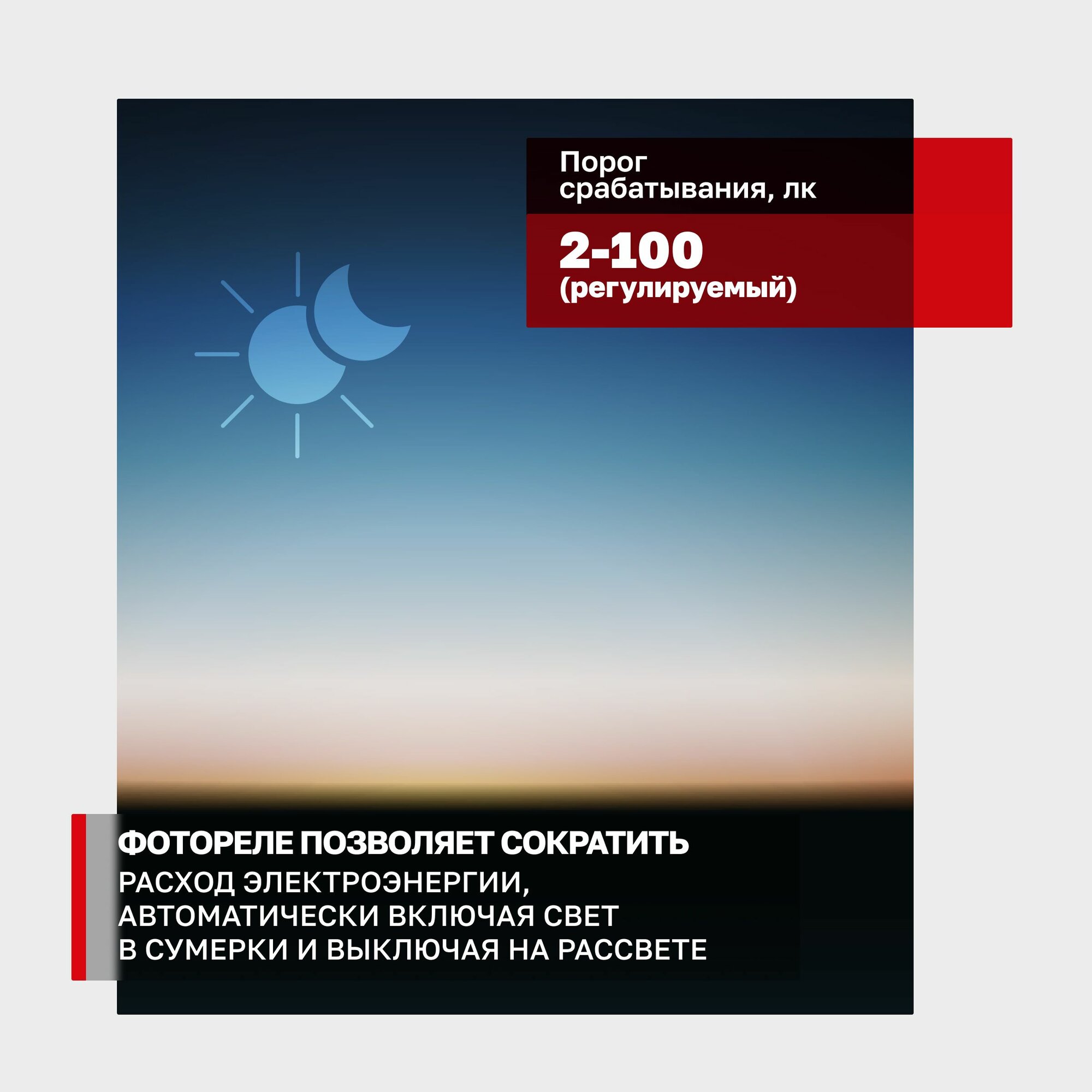 | Установка сумеречного порога (макс) | 100 лк |
