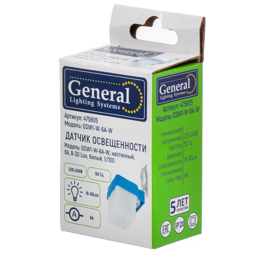10 цен на GENERAL Фотореле GSW1 (датчик освещенности), 6А, 1320W, IP40, 475805