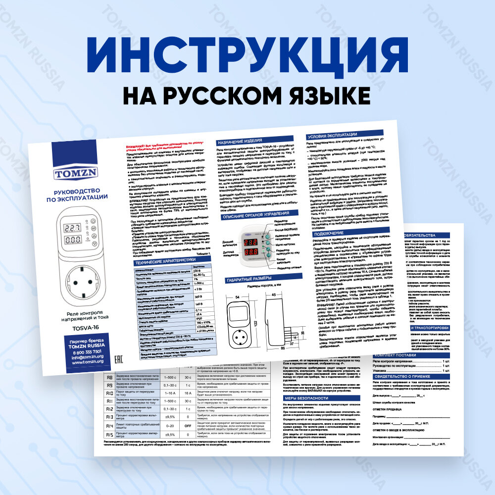 Реле напряжения в розетку TOMZN TOSVA-16 для защиты бытовых приборов от перенапряжения и перегрузки по току информация: