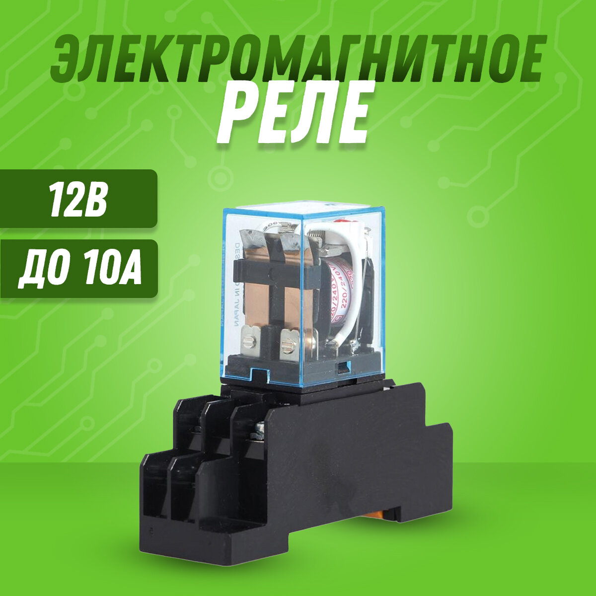 Электромагнитное реле 12В для коммутации любого тока до 10А с креплением на дин рейку информация:
