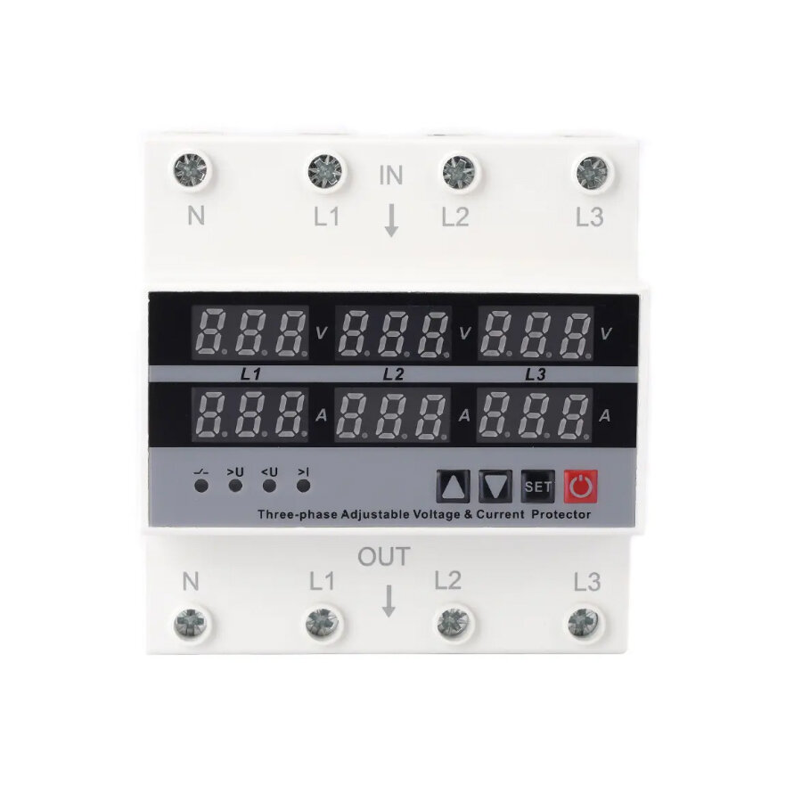 10 цен на Реле контроля напряжения трехфазное с защитой от перегрузки по току 63А / Многофункциональное защитное устройство на DIN рейку