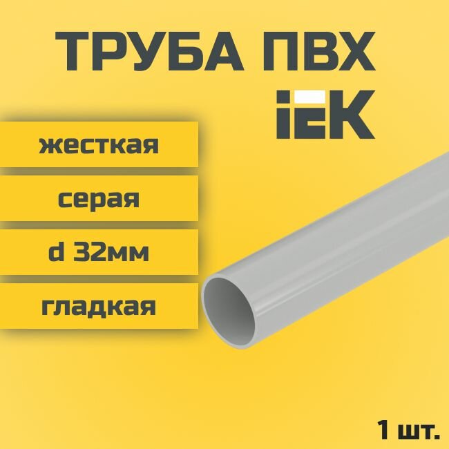 Труба ПВХ IEK гладкая жесткая d32мм серая L1000 1шт. информация: