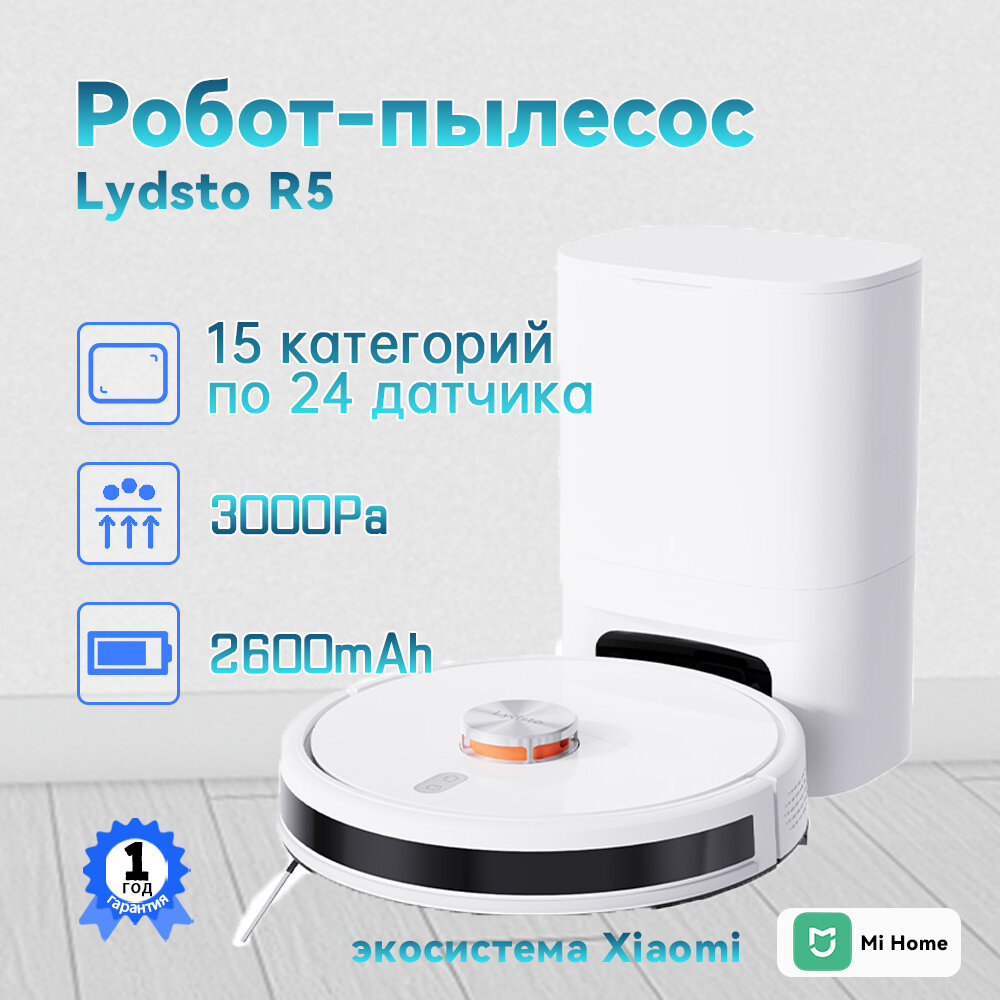 Мощный робот пылесос для сухой и влажной уборки Lydsto R1D EDGE / Моющий пылесос для дома / Версия на русском языке