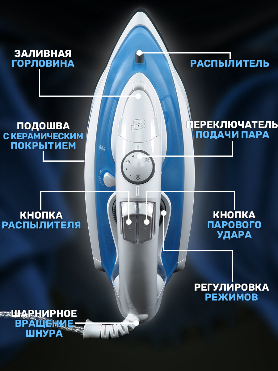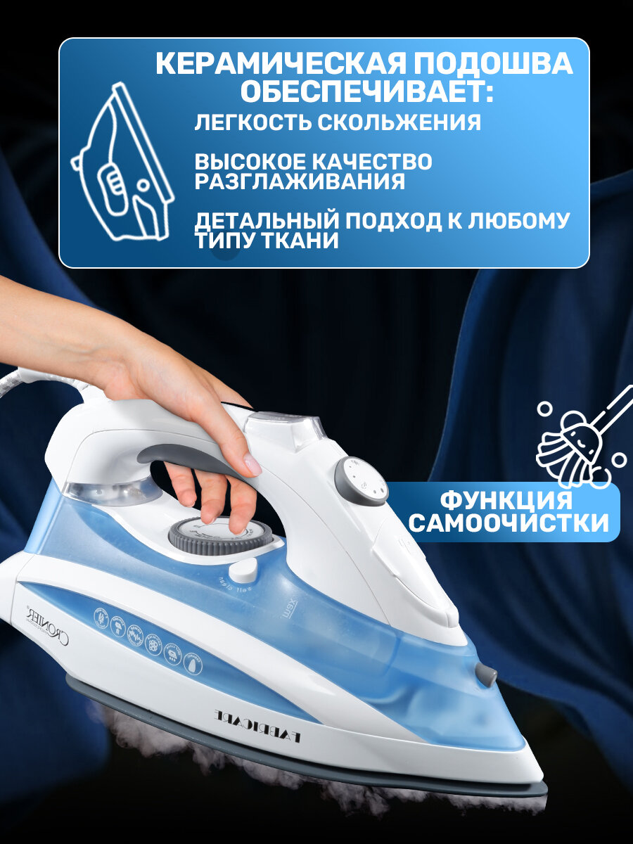 Домашний утюг паровой, с функцией вертикальной глажки, паровой удар, антипригарное покрытие, система самоочистки, 2600ВТ