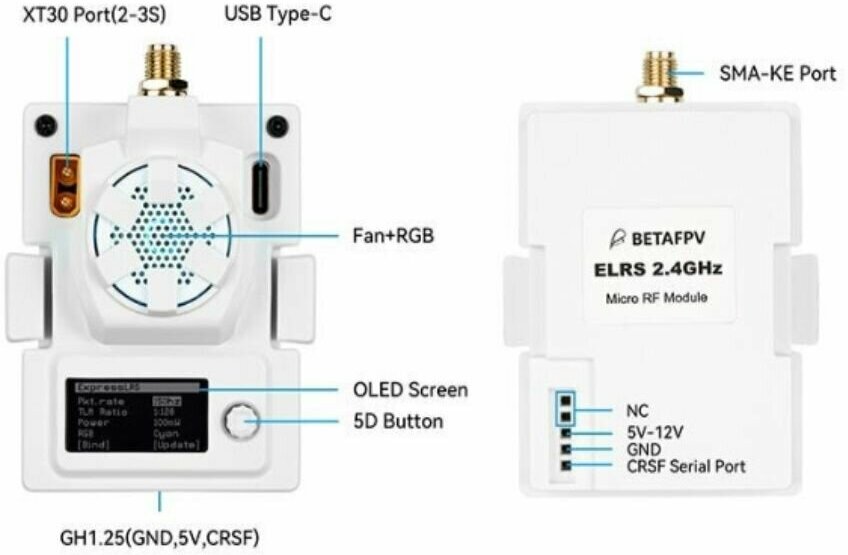 Внешний модуль BETAFPV ELRS Micro TX ELRS 915 МГц информация: