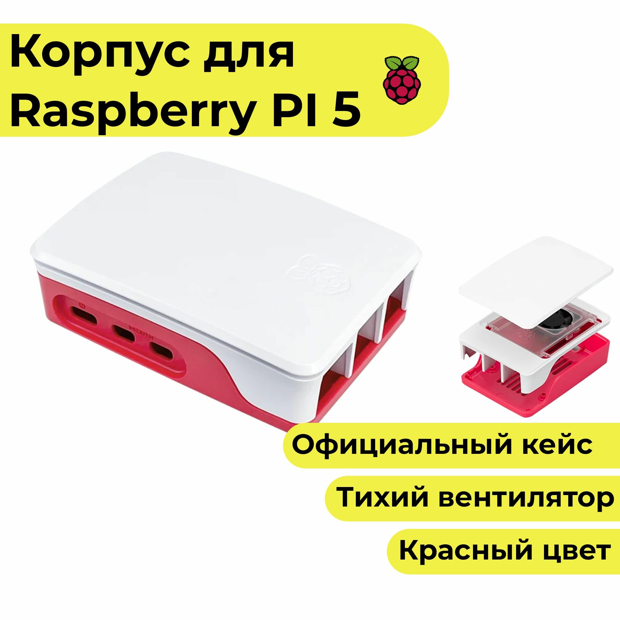 Красный корпус для Raspberry Pi 5 с вентилятором (кейс, чехол, радиатор) информация: